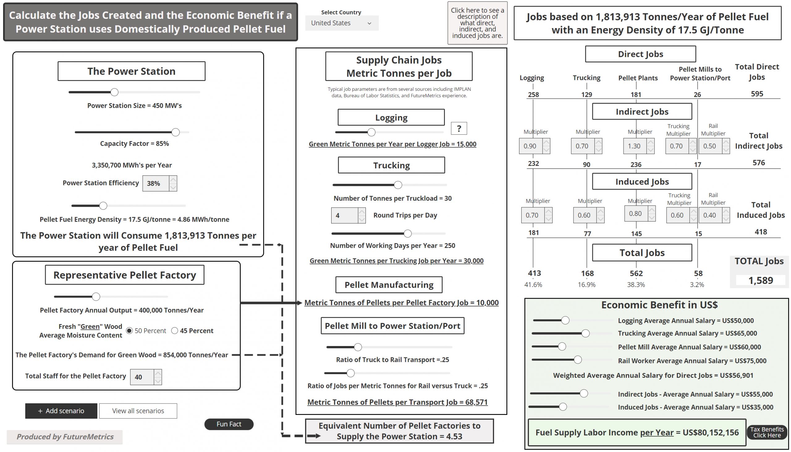 Do you need to answer the question: “How many jobs are created and what are the labor income effects when supplying a power station with wood pellet fuel?” This dashboard shows you the answers!